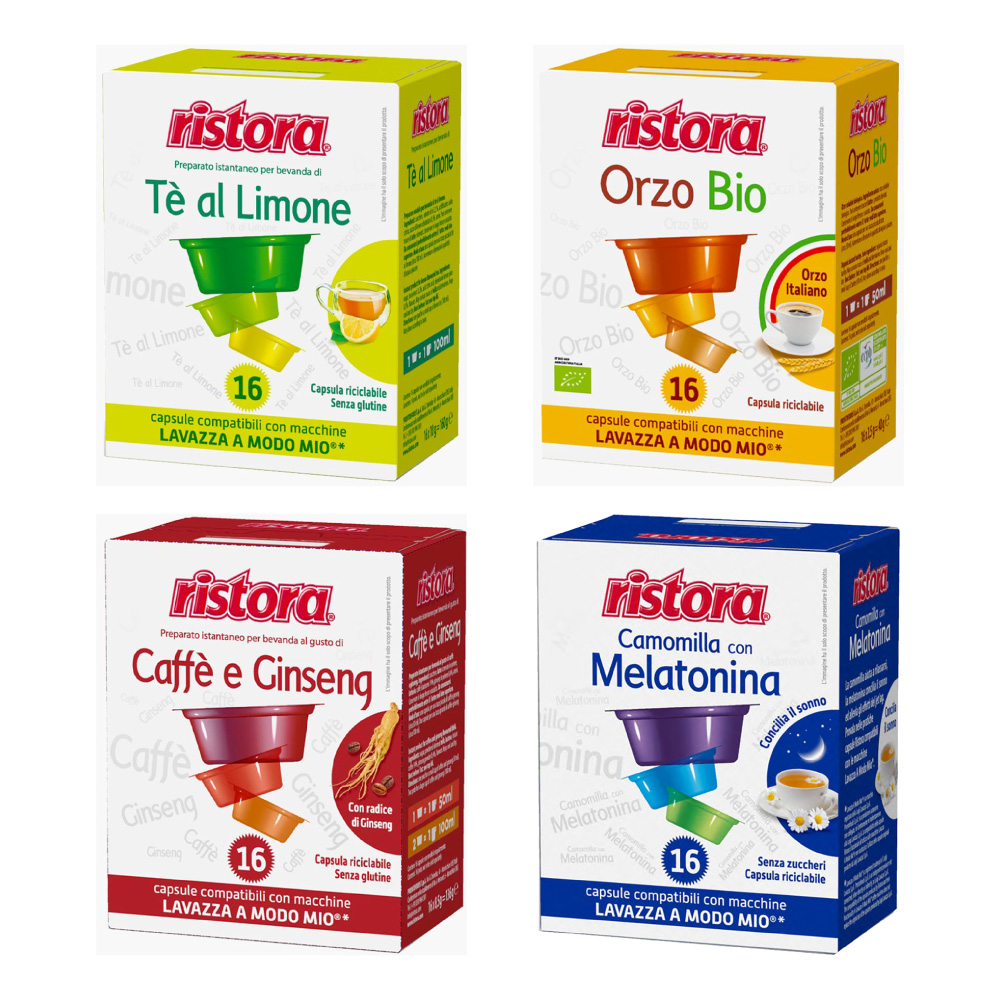 Stai recensendo:128 Capsule Ristora compatibili Lavazza A Modo Mio a vostra scelta - 8 astucci da 16 capsule
