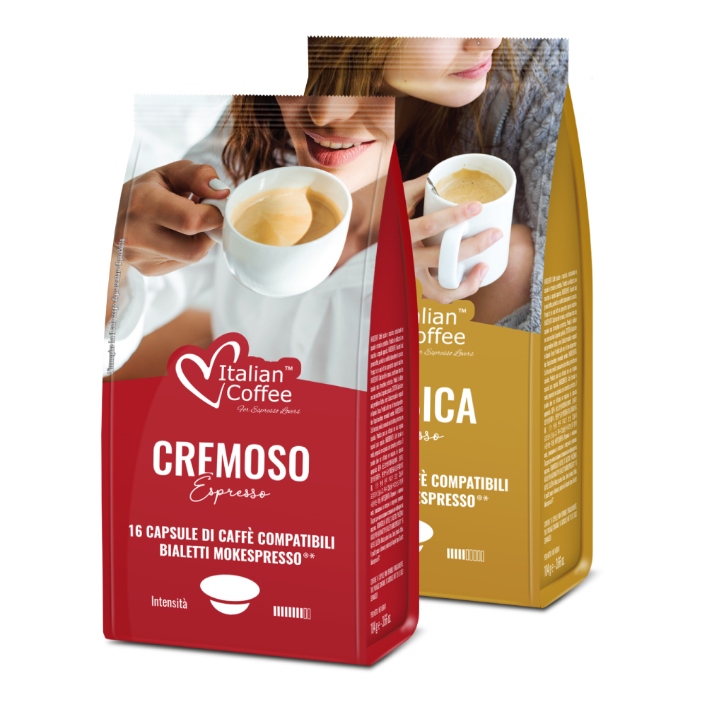 6 Astucci da 16 capsule a vostra scelta Italian Coffee caffè compatibili Bialetti Mokespresso, spedizione gratuita in Italia. Prezzo super!