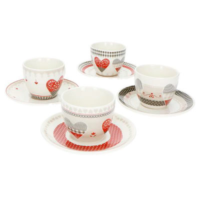 Tenerezza, raffinatezza ed affetto, per una pausa caffè squisitamente romantica. Un momento felice, come la collezione Happy Day! Un set di quattro eleganti tazzine in bone china, dotate di piattino, che renderà davvero speciale il tuo break. Armoniosi cuoricini dalle diverse decorazioni riempiranno la circonferenza di ogni tazzina tra aggraziati decori geometrici e delicate colorazioni adatte ad ogni stagione. Un caffè gustoso, bevuto con stile: una classica pausa caffè, italian style.