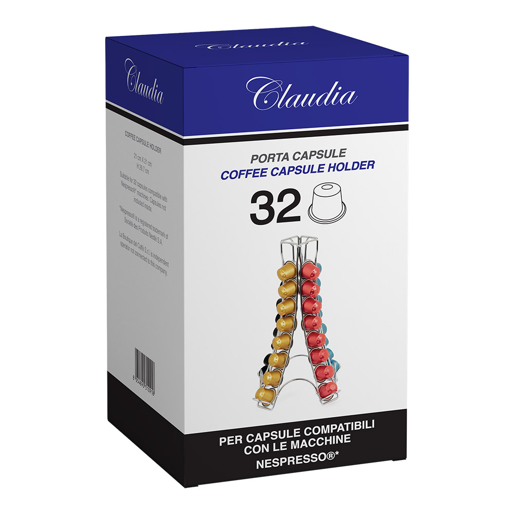Il Portacapsule Claudia è la soluzione perfetta per chi desidera un’organizzazione pratica e raffinata del proprio spazio caffè. Con una capacità di 32 capsule compatibili Nespresso, Cremesso e Delizio, unisce compattezza ed eleganza in un design sobrio e funzionale.